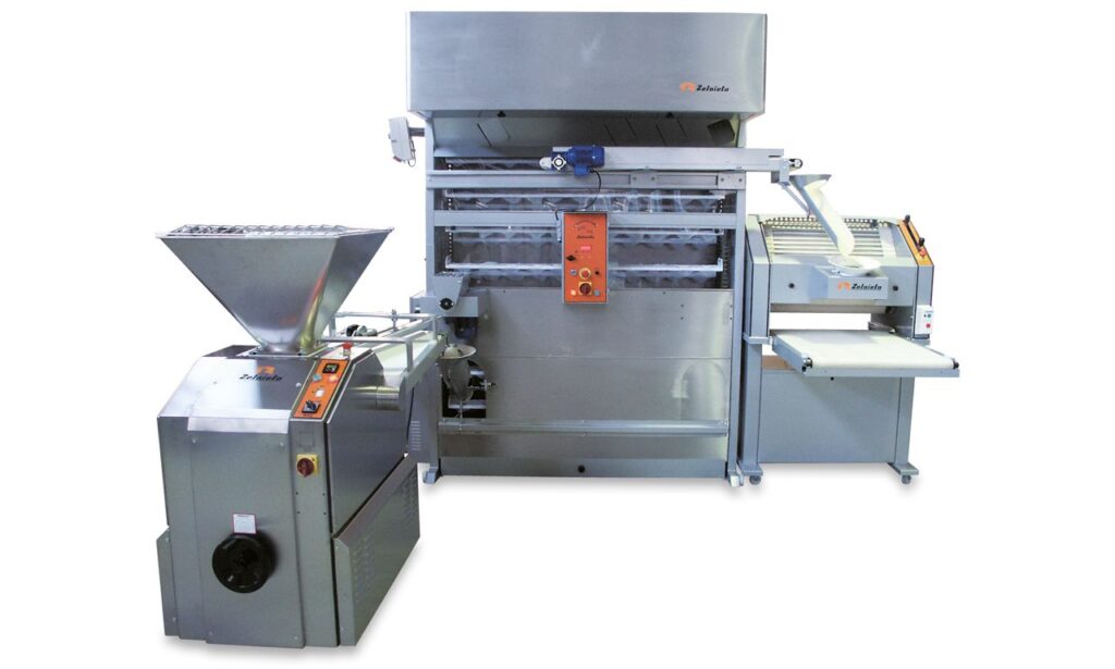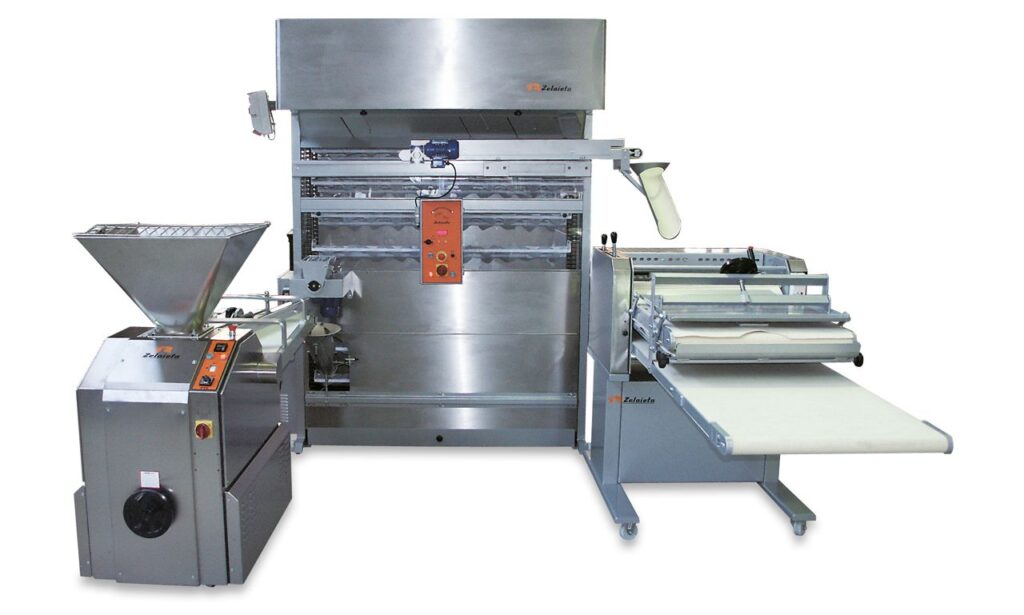 ZELAIETA Formadora de barras MAXI MIXTA KOMPACT Linea automáticaProducción max: 2000p/h (unitarias) 3500 a 9000p/h (por corte)Baguettes, barras, bollos, panes rústicos etc.Corte de 2 a 6 piezasSeparación de piezas por correas móviles y ajustables Catálogo Más información ZELAIETA Grupo semiautomático con formadora horizontal Tipos de pan: Todo tipo, incluyendo con puntas.Producción máxima: 2.100 piezas/hora.Recogida: Manual.Espacio ocupado: 6 m².Configuración: Posiciones variables. Catálogo Más información ZELAIETA Grupo semiautomático con formadora vertical Tipos de pan: Todos.Producción máxima: 1.800 piezas/hora.Recogida: Manual.Espacio ocupado: 5 m².Configuración: Posiciones variables. Catálogo Más información